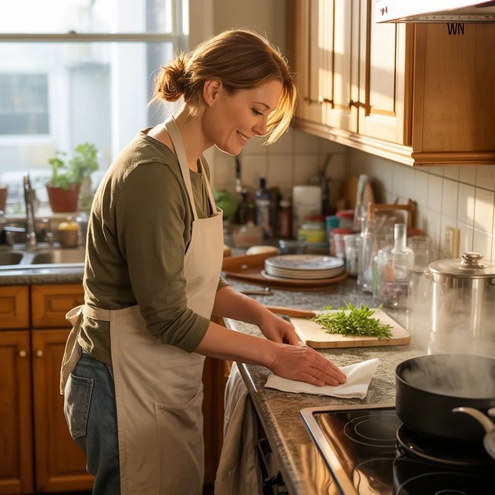 After each meal, take five minutes to reset the kitchen. This does not mean deep cleaning. Simply clear the counters, rinse dishes, wipe one surface, and return a few items to their place.